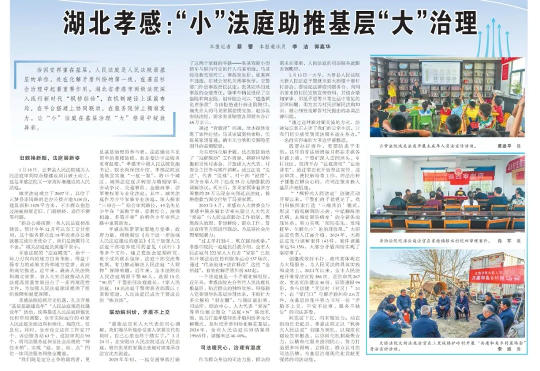 该文以新时代“枫桥经验”为指引,生动展现了孝感市两级法院深耕基层司法、赋能基层治理的生动实践。作品聚焦孝感法院基层人民法庭,详细呈现了“庭、室、站、点”四位一体司法服务网络的建设成效,记录了法官们深入田间地头、乡村社区,通过巡回审判、普法宣传、多元调解等方式,将矛盾纠纷化解在基层、化解在萌芽状态的鲜活故事,彰显了“小法庭”在基层治理“大”格局中的重要作用,传递了司法为民、公正司法的深厚情怀。