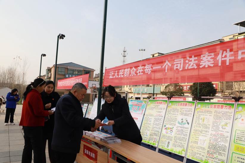 12月4日,安陆法院烟店法庭联合烟店镇政府、平安建设办、派出所、司法所等单位,开展接地气的“平安早市”宣传活动,将宪法知识与反诈、婚姻家庭、民间借贷等实用法律内容打包,化作群众易读的宣传手册。