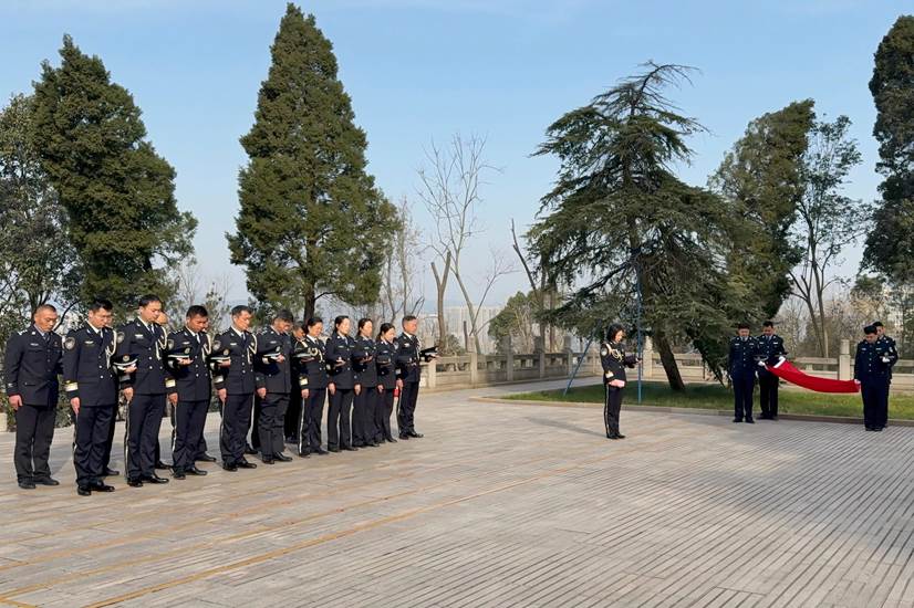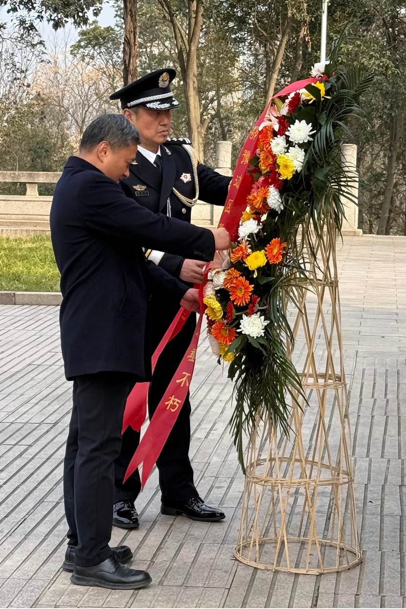 随后,全体人员前往鄂豫边区革命烈士陵园,庄严举行敬献花篮、集体默哀仪式。在肃穆的氛围中,全体党员面向党旗,重温入党誓词,字字铿锵,表达了司法警察队伍对党忠诚、信念如磐的政治本色。