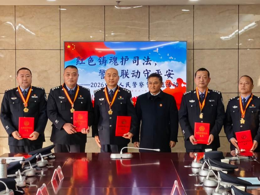 2026中国人民警察节主题大会上,大悟法院党组书记、院长王虎首先致辞,向全体司法警察致以节日的诚挚问候和崇高敬意。随后,一场温馨而庄重的从警特定年限纪念章颁发仪式成为焦点。